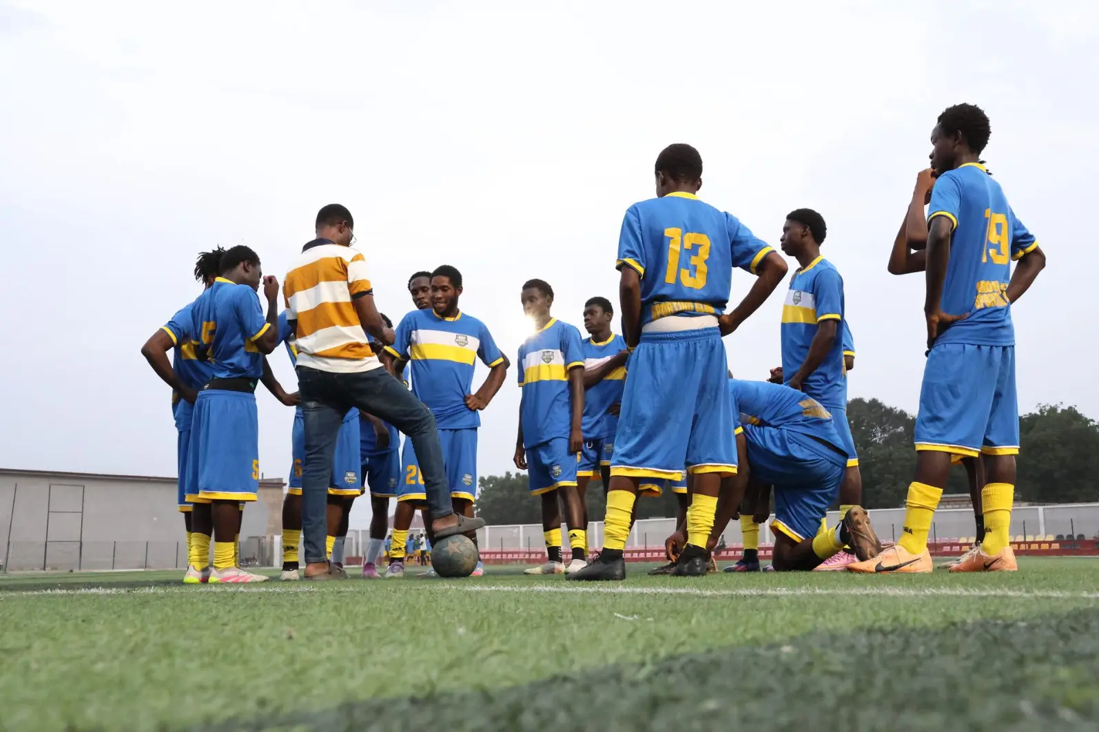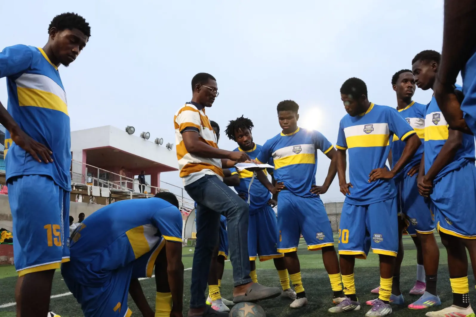fired up as the gaffer delivers the final instructions before kickoff against